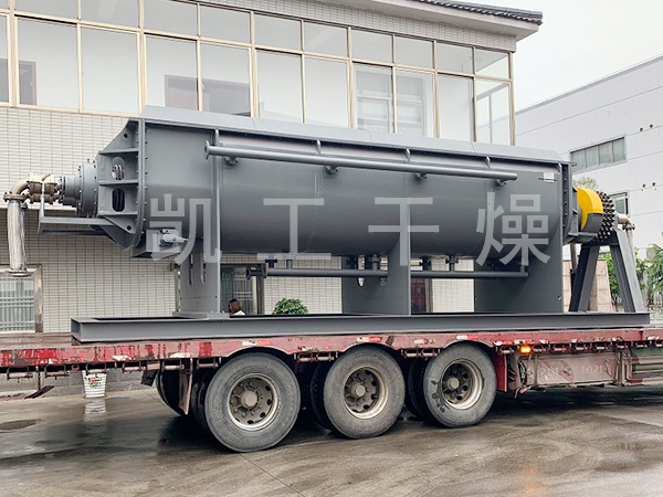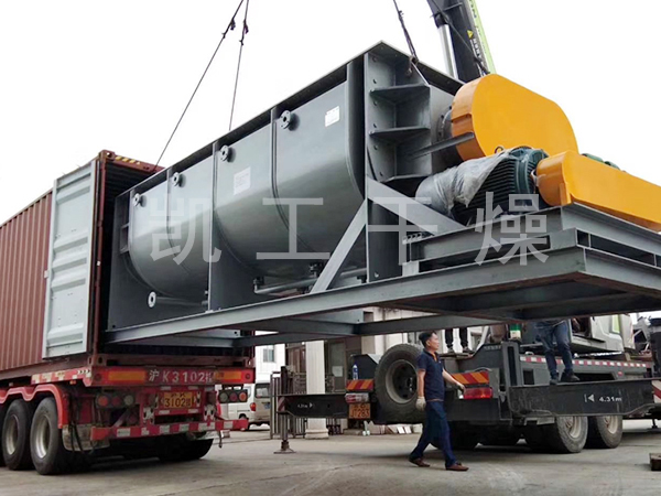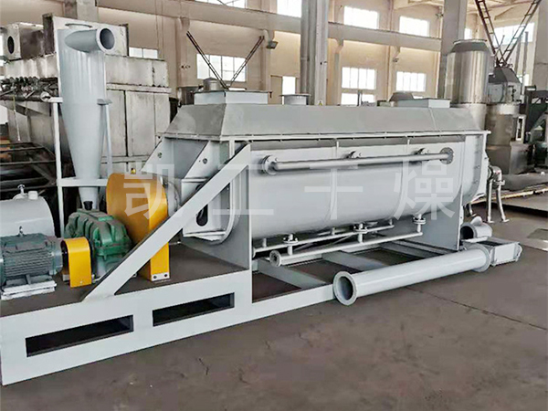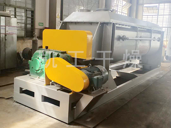 空心軸上密集排列著楔型中空漿葉,熱介質(zhì)經(jīng)空心軸流經(jīng)漿葉。單位有效容積內(nèi)傳熱面積很大,熱介質(zhì)溫度從-40℃到320℃,可以是水蒸汽,也可以是液體型:如熱水、導(dǎo)熱油等。間接傳導(dǎo)加熱,沒有攜帶空氣帶走熱量,熱量均用來(lái)加熱物料。熱量損失僅為通過器體保溫層向環(huán)境的散熱。楔型漿葉傳熱面具有自清潔功能。物料顆粒與楔型面的相對(duì)運(yùn)動(dòng)產(chǎn)生洗刷作用,能夠洗刷掉楔型面上附著物料,使運(yùn)轉(zhuǎn)中一直保持著清潔的傳熱面。漿葉干燥機(jī)的殼體為Ω型,殼體內(nèi)一般安排二到四根空心攪拌軸。殼體有密封端蓋與上蓋,防止物料粉塵外泄而充分發(fā)揮作用。